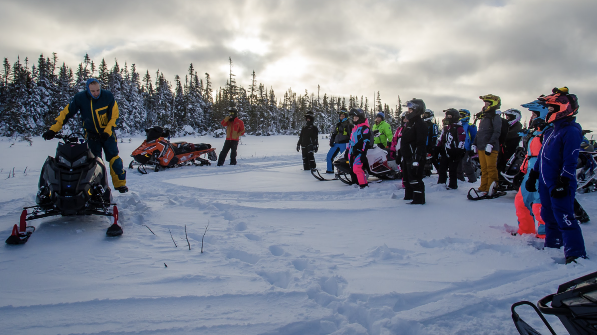 Modern snowmobiles are stable and intuitive. Most riders feel comfortable within minutes, especially when starting at a relaxed, guided pace. This is where the initial ride into the lodge is ideal. The trail will be wide and smooth. You’ll quickly get comfortable with the gas (throttle) and the brake. And you’ll be reminded that on the bigger/wider trails, you’ll need to keep to the right because they are two-way trails.