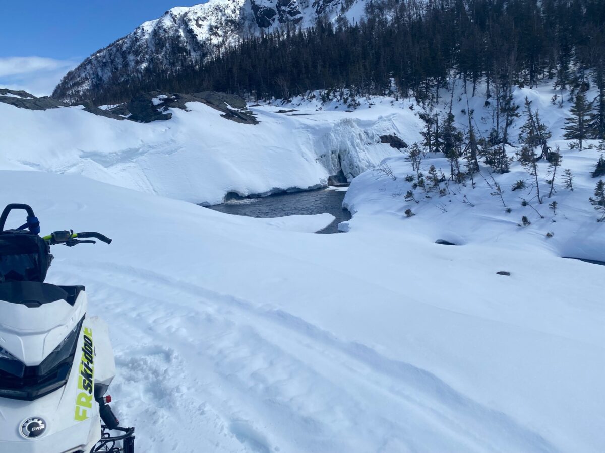 Western Brook Pond Gorge – more commonly referred to as “The Gorge”, Western Brook Gorge has become the iconic picture spot for both summer and winter…it’s way more accessible in winter via snowmobile. Western Book Gorge is located within the National Park, so a Park Pass is a must. The Park boundary is only 6 KM from Main River Lodge; no other Lodge is this close to the best terrain. Access points can be from three main area: Matty’s Pond Access route, Main River/St. Paul’s Access and Angus Lake Access. Guests at any of the Arluk Remote lodges can easily have Western Brook Gorge as a key route for their day.